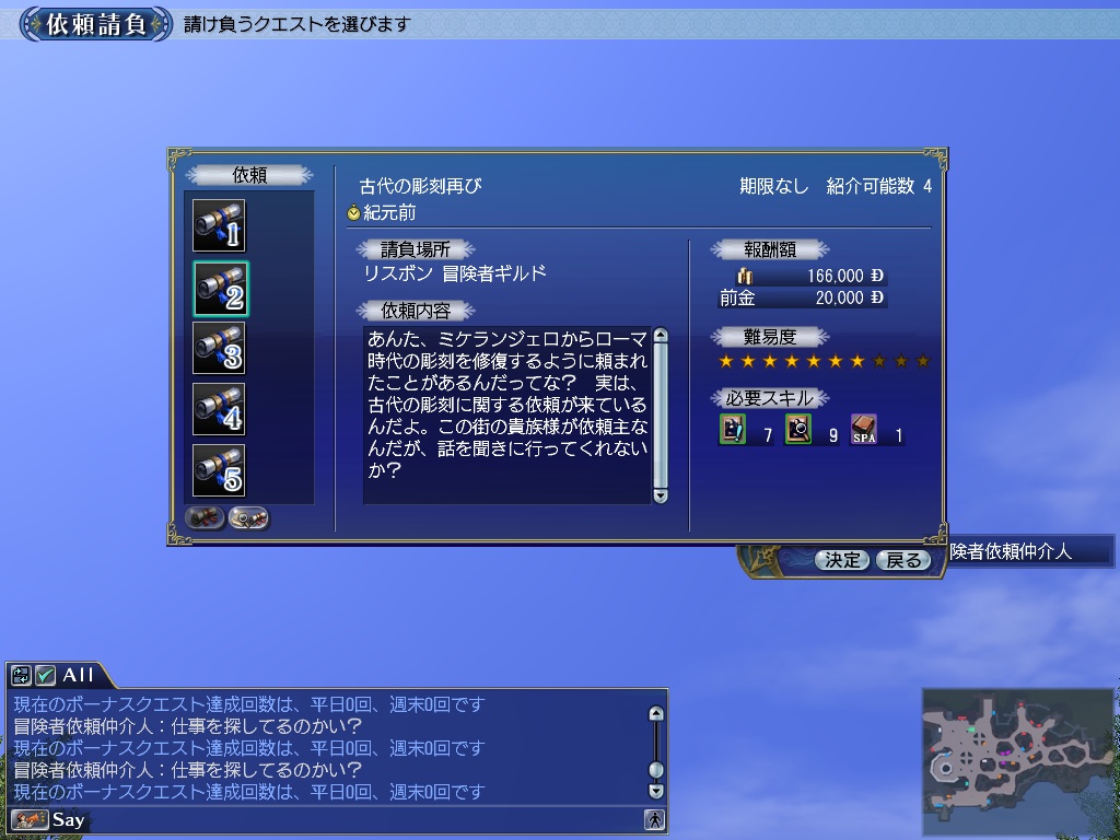 在冒险公会委托介绍人处,可以接受新的发现任务。